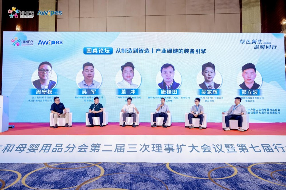 Zhou Shouquan, executive vice president of Jinsanfa Group and general manager of Youquan Care Products Co., Ltd., presided over the theme discussion of "From Manufacturing to Intelligent Manufacturing丨Equipment Engine of the Industrial Green Chain". Kang Guitian, General Manager of Autofa Nonwovens Machinery Technology (Wuxi) Co., Ltd., Dong Chong, General Manager of Guangzhou Spley Technology Co., Ltd., Guo Libo, Sales Director of Zhengzhou Zhilian Machinery and Equipment Co., Ltd., Wu Jun, Sales Director of Foshan Fengyi Intelligent Equipment Co., Ltd., Wu Jiahui, Deputy General Manager of Lufeng Machinery (Zhengzhou) Co., Ltd., and other representatives in the field of special equipment in the hygiene and maternal and infant products industry shared the free switching technology of wet wipes, the whole line of soft towels, intelligent manufacturing and technical services, unmanned production lines, and low grammage, The latest developments in wide, fine and high-speed hot air production lines.