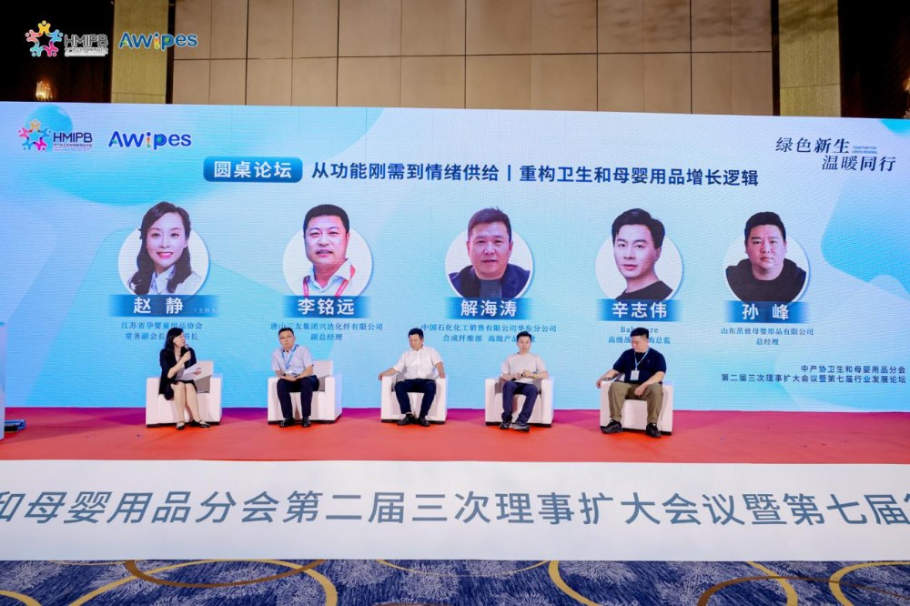 Zhao Jing, executive vice president and secretary-general of Jiangsu Pregnancy, Infant and Children's Products Association, presided over the theme discussion of "From Functional Rigid Demand to Emotional Supply丨Reconstructing the Growth Logic of Hygiene and Maternal and Baby Products". Representatives of special fibers and brands of hygiene and maternal and infant products, such as Xie Haitao, senior strategic purchasing director of Babycare, Ma Chuncheng, sales director of Tangshan Sanyou Group Xingda Chemical Fiber Co., Ltd., and Sun Feng, general manager of Shandong Zhuobi Maternal and Infant Products Co., Ltd., shared their interactive experience, health and comfort, green environmental protection, functional advantages and cost performance.
